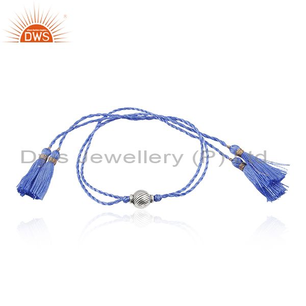 Designer Oxidized Silver Bead Blue Macrame Bracelet Jewelry For Girls