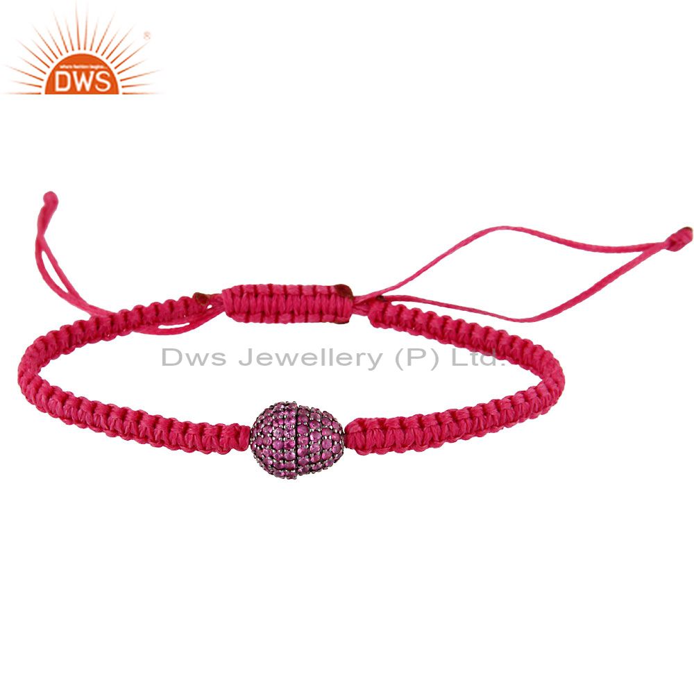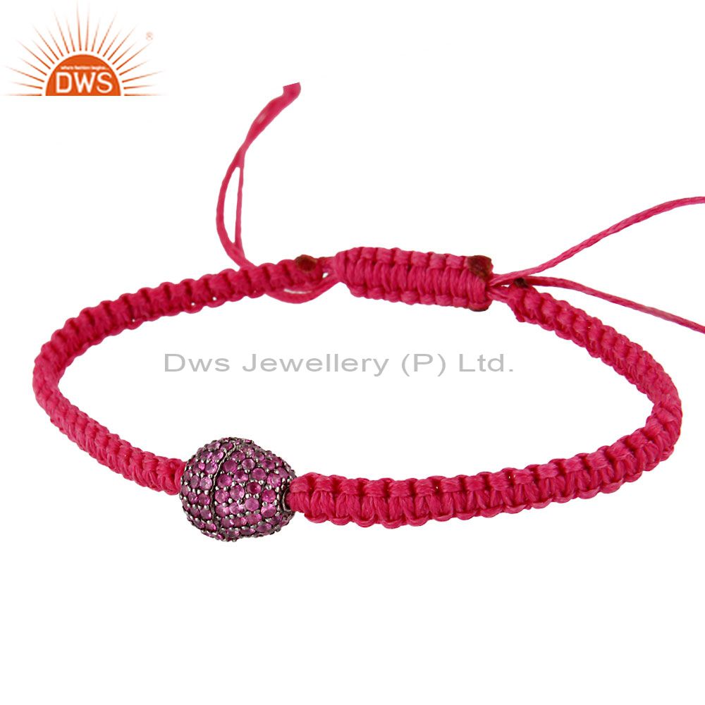 Designer Pink Sapphire Gemstone Beads Sterling Silver Finding Macrame Bracelets