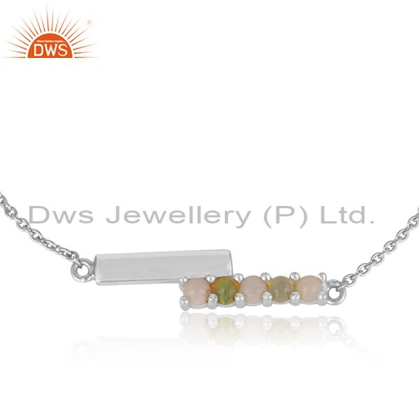 Designer Sterling Silver 925 Bar Bracelet With Ethiopian And Pink Opal
