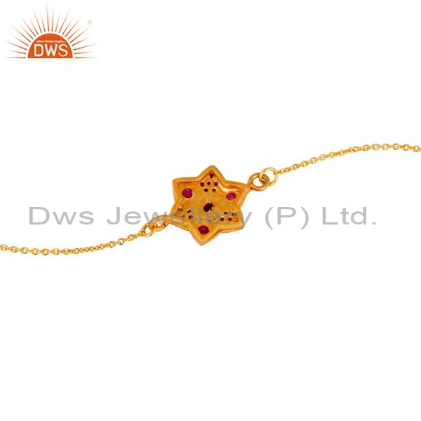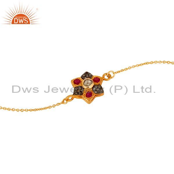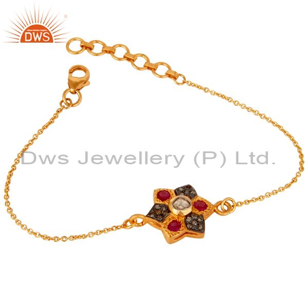 Diamond & Ruby With 18K Gold Plated Sterling Silver Bracelet