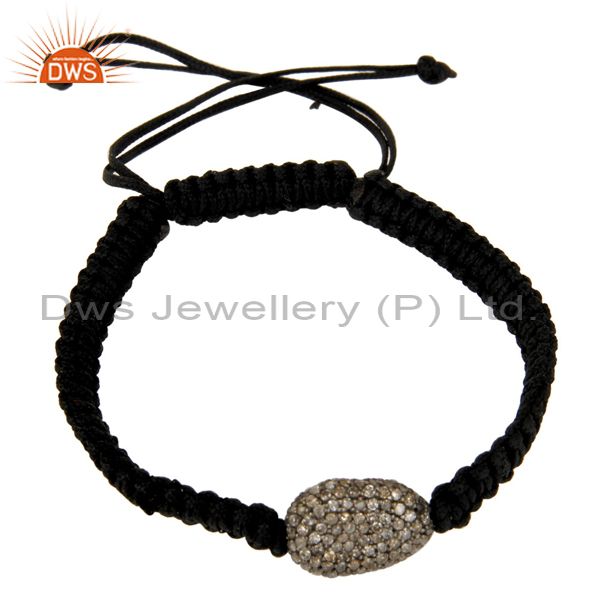 Diamond 925 Sterling Silver Beads Gemstone Black Macrame Unisex Bracelet