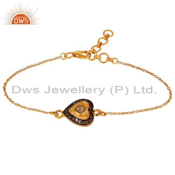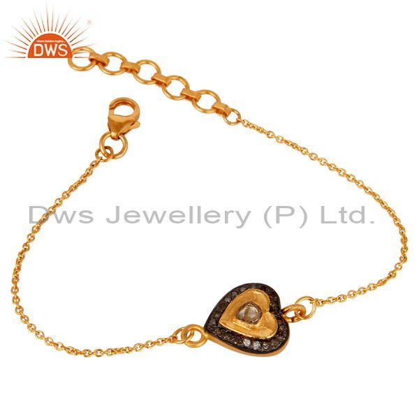 Diamond Polki And 18K Gold Plated Sterling Silver Heart Shape Chain Bracelet
