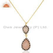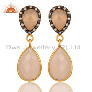 Dyed Rose Chalcedony Gemstone Sterling Silver Womens Bracelet - Gold Plated