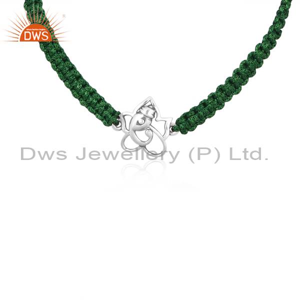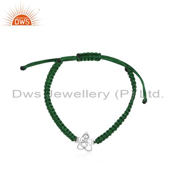Elegant Green Cotton Dori Sterling Silver Bracelet For Women