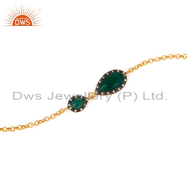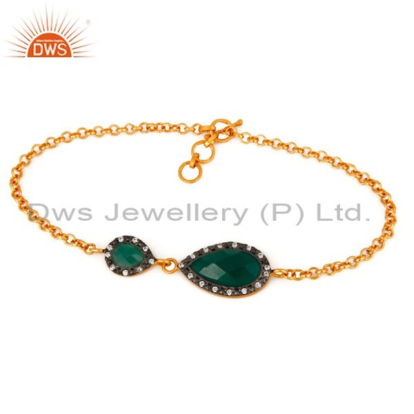 Faceted Green Onyx Gemstone & Cz Gold Plated Sterling Silver Beautiful Bracelet