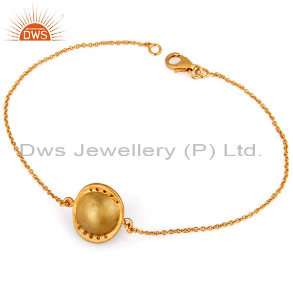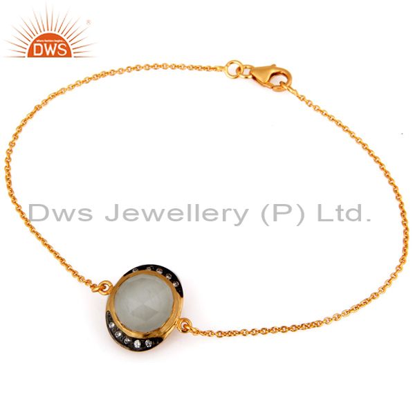 Faceted White Moonstone Sterling Silver Bracelet With Gold Plated