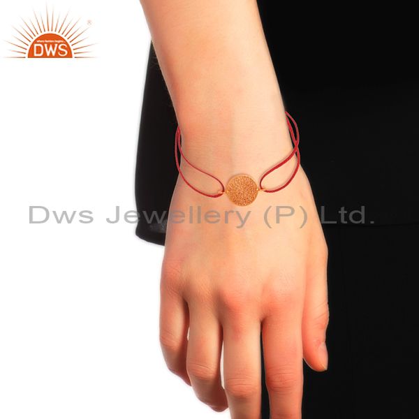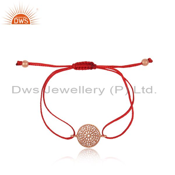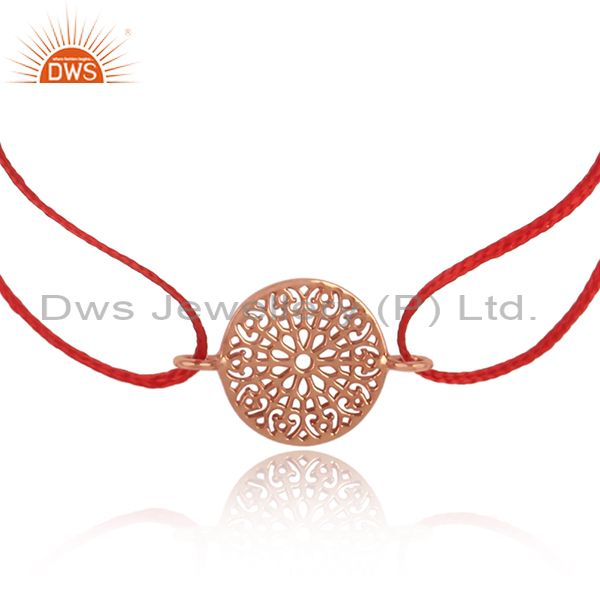 Filigree Mandala Design Rose Gold On Silver Red Cord Bracelet