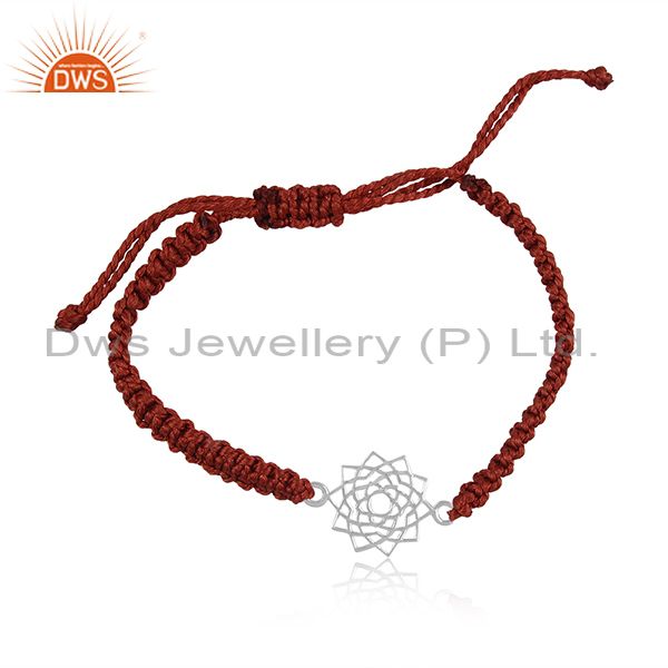 Fine 925 Silver Round Charm Set Red Cotton Dori Bracelet