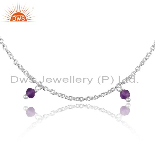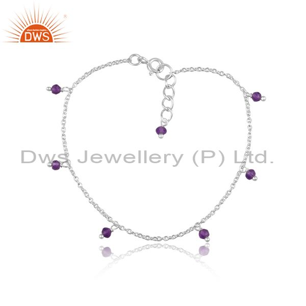 Fine 925 Sterling Silver Amethyst Set Classic Chain Bracelet