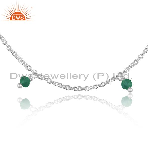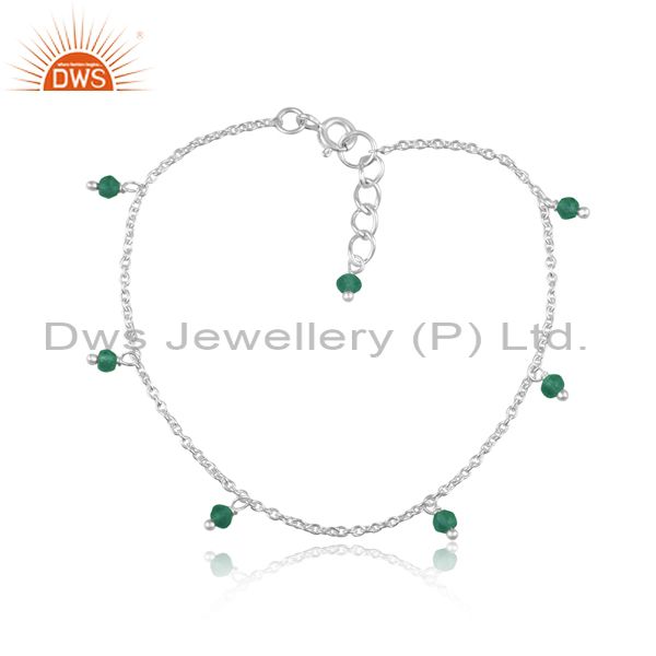 Fine 925 Sterling Silver Emerald Set Classic Chain Bracelet