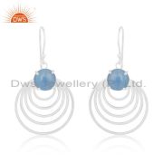 Floral Design 925 Sterling Fine Silver Blue Chalcedony Gemstone Chain Bracelet