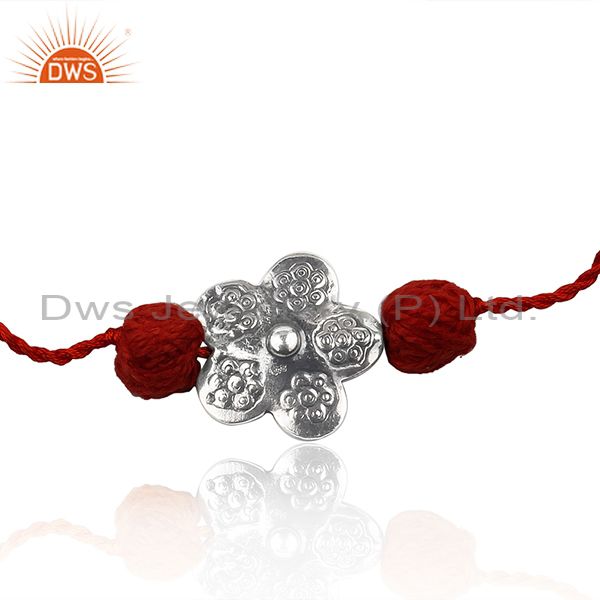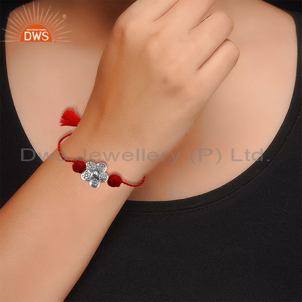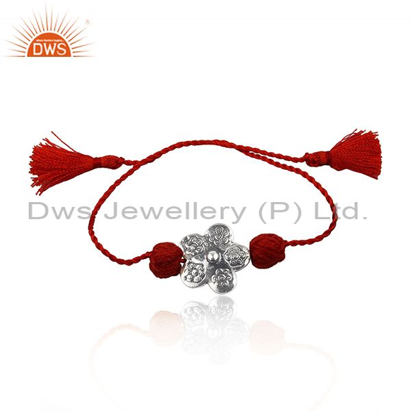 Flower Design Oxidized Silver Red Color Macrame Braelet Jewelry