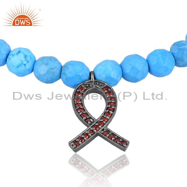 Garnet And Turquoise Set Black On Sterling Silver Necklace
