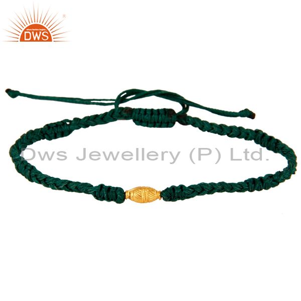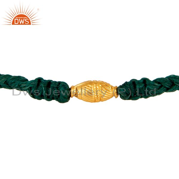 Genuine 18K Yellow Gold Beads Macrame Thread Bracelet Handmade Designer Jewelry