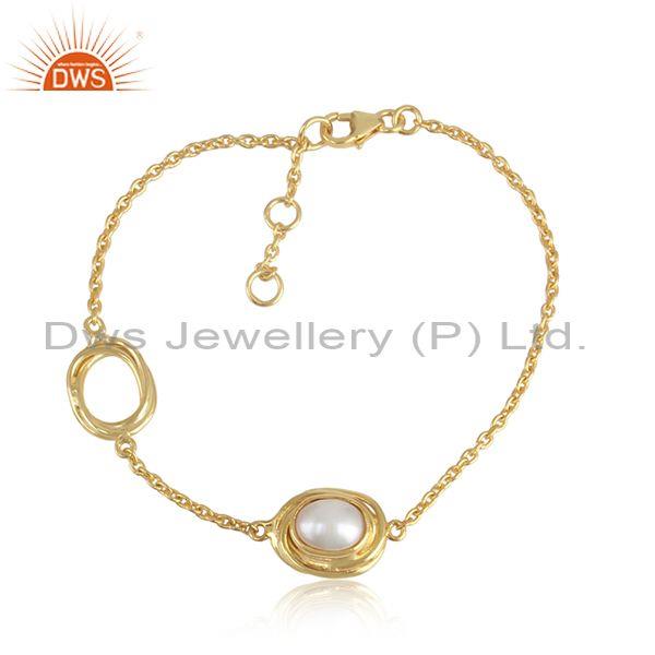 Gold On 925 Silver Wrapped Treasure Pearl Chain Bracelet