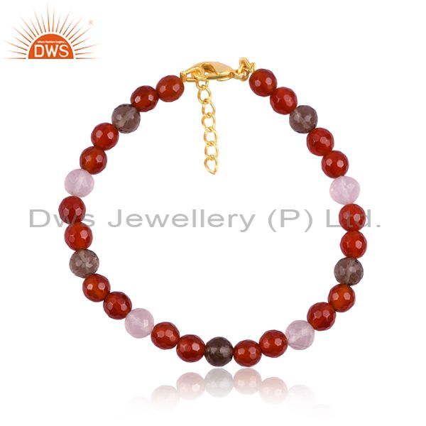 Gold On Silver Chain Multi Color Beaded Gemstone Bracelet