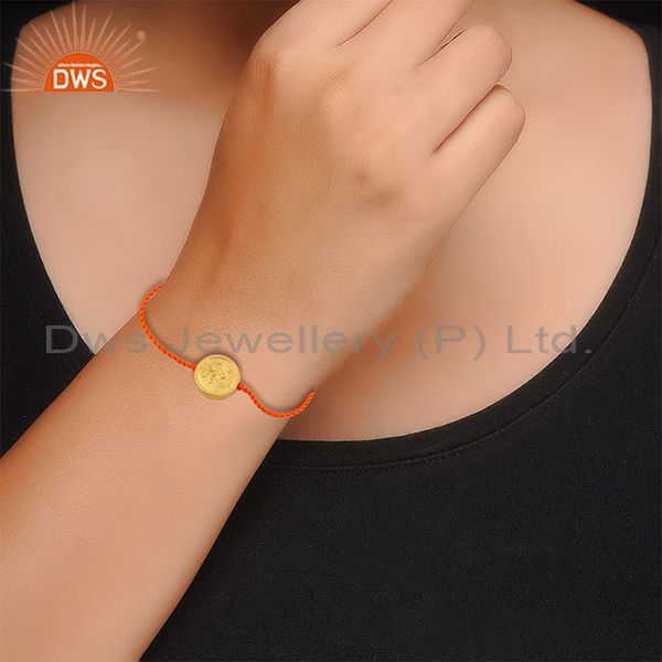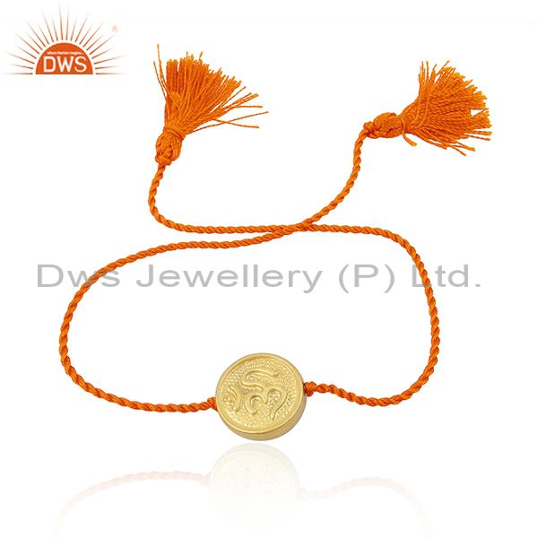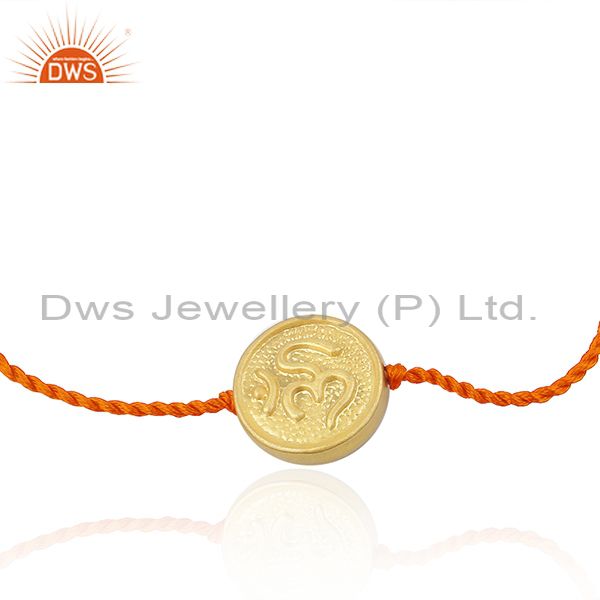 Gold Plated 925 Silver Om Design Orange Macrame Bracelet Jewelry