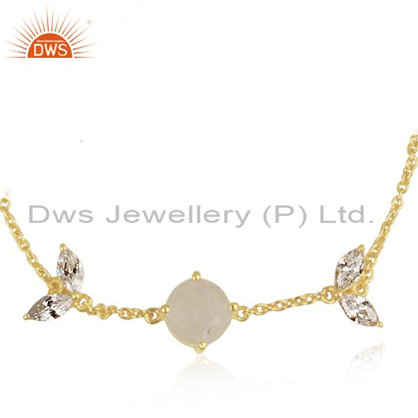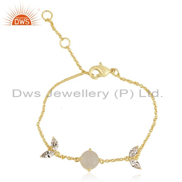Gold Plated Brass Rainbow Moonstone Chan Link Fashion Bracelet Wholesale