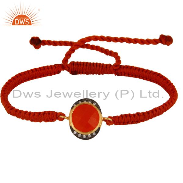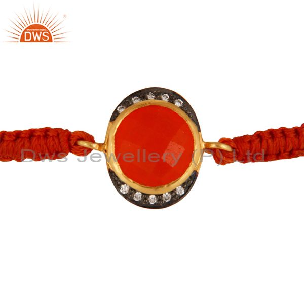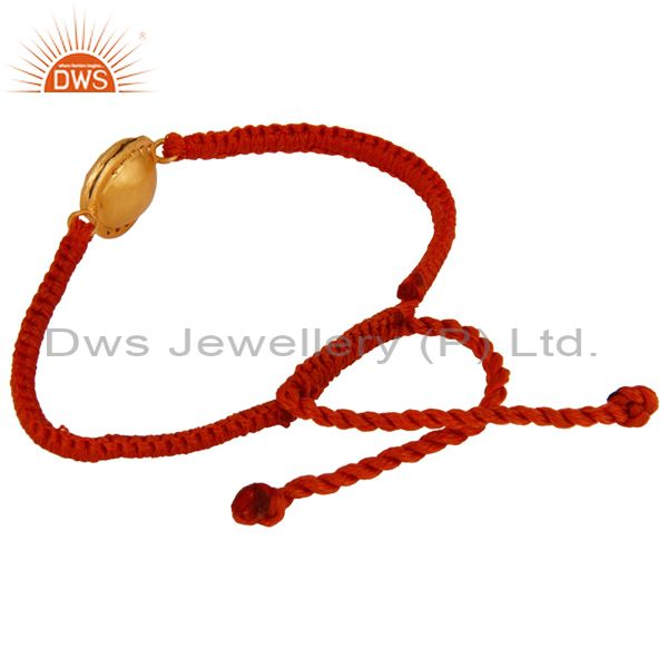Gold Plated Silver Orange Aventurine Semi Precious Stone Macrame Bracelet