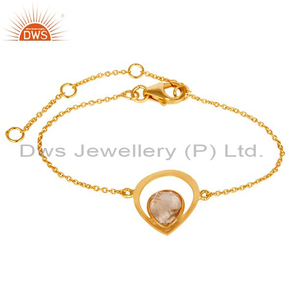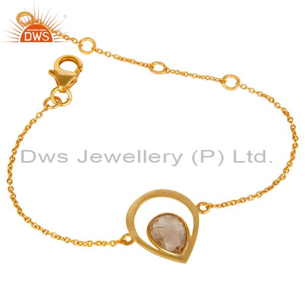 Golden Rutile 18K Yellow Gold Plated Sterling Silver Gemstone Handmade Bracelet