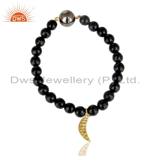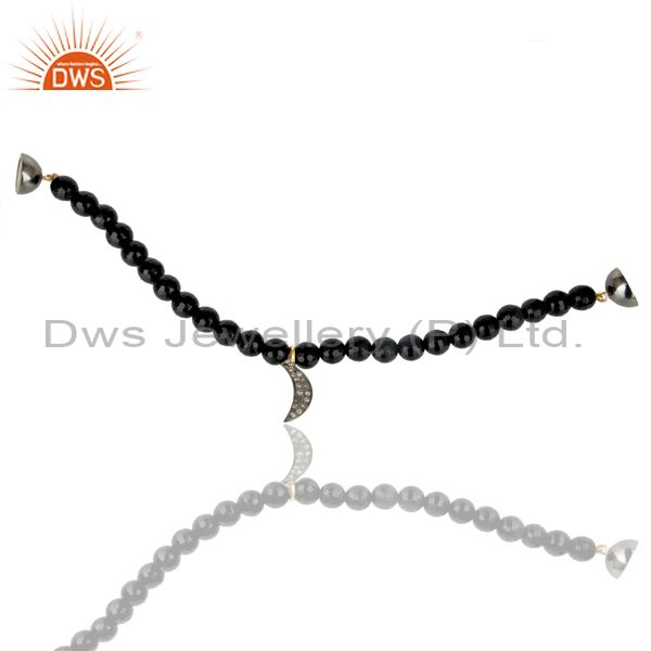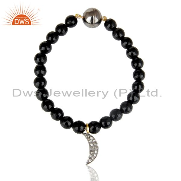 Gorgeous Solid Gold Handmade Pave Diamond Round Cut Black Onyx Bracelet Jewelry