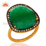 Green Aventurine Gemstone 18-Karat Yellow Gold Plated Chain Bracelet With Cz