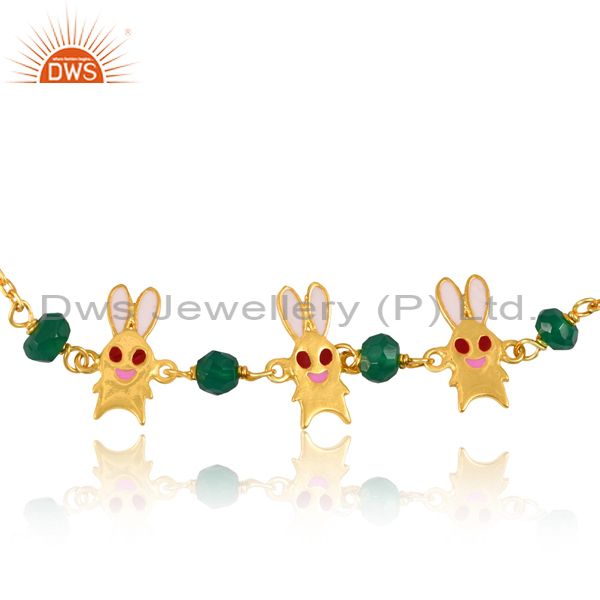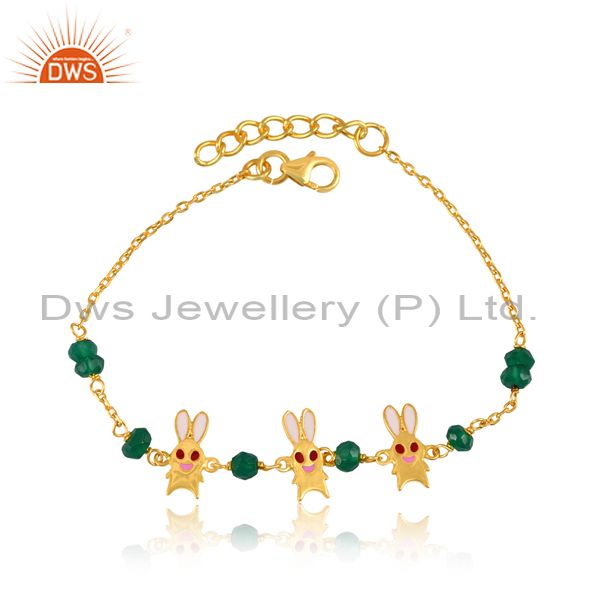 Green Onyx Enamel Pink 18K Gold Sterling Silver Bracelet