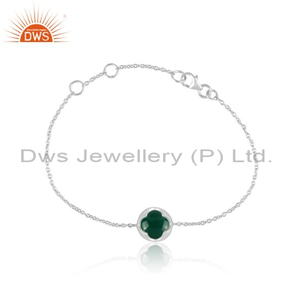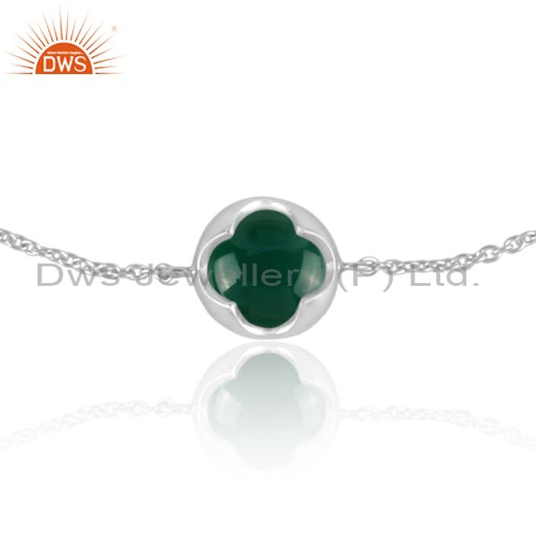 Green Onyx Set Fine Sterling Silver Floral Charm Bracelet