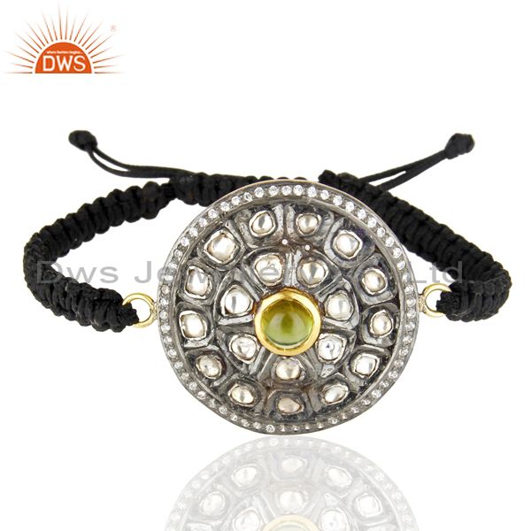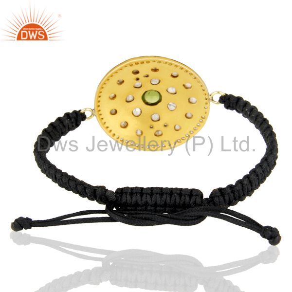 Green Tourmaline Crystal Quartz Cz Macrame Gold Plated Sterling Silver Bracelet