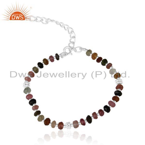 Handcrafted Designer Multi Toumaline Bead Bracelet In Silver