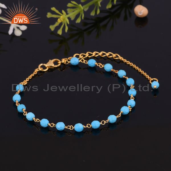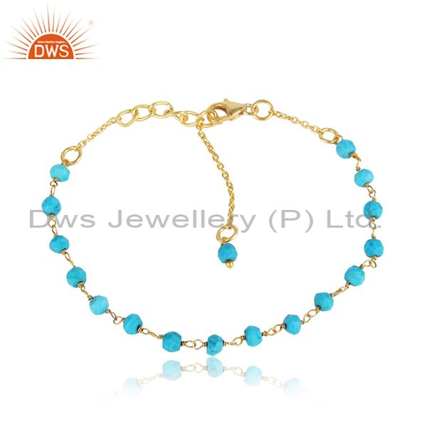 Handcrafted Turquoise Bead Bracelet in Yellow Gold on Silver