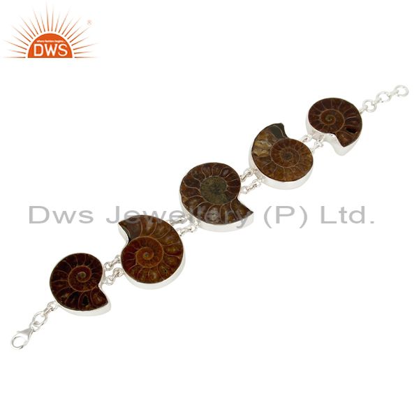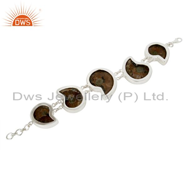 Handmade 925 Solid Sterling Silver Ammonite Bezel Set Gemstone Bracelet