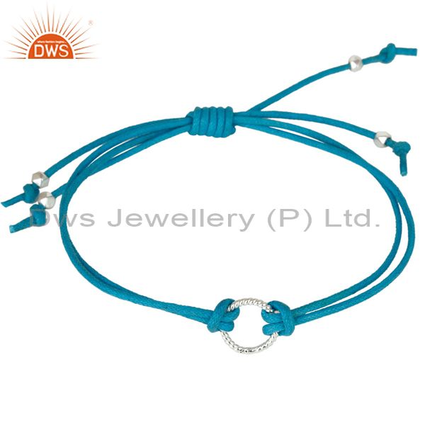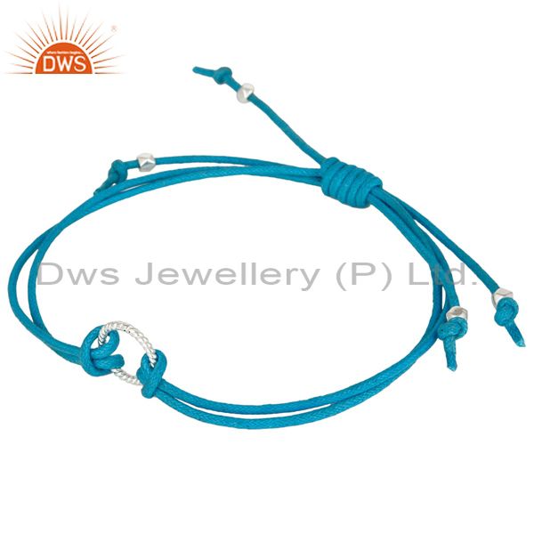 Handmade 925 Sterling Silver Blue Cotton Dori Macrame 16 Inch Bracelet