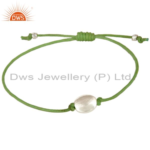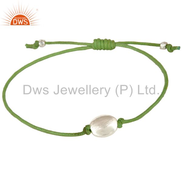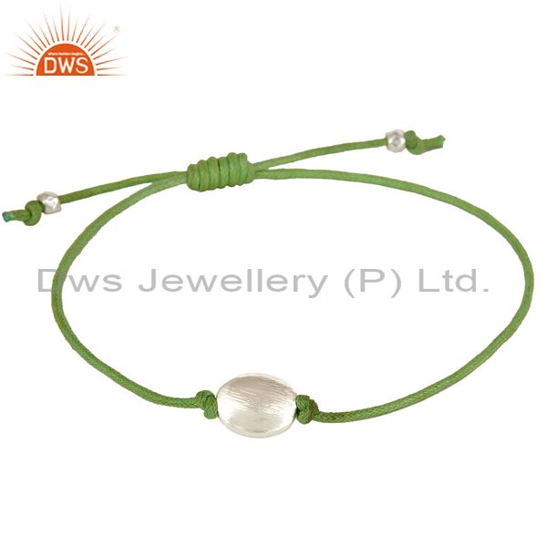 Handmade 925 Sterling Silver Green Cotton Dori Macrame 16 Inch Bracelet