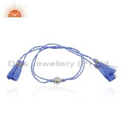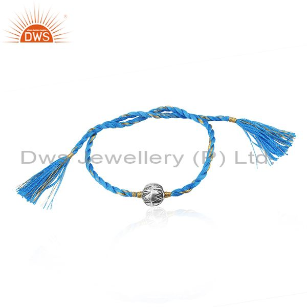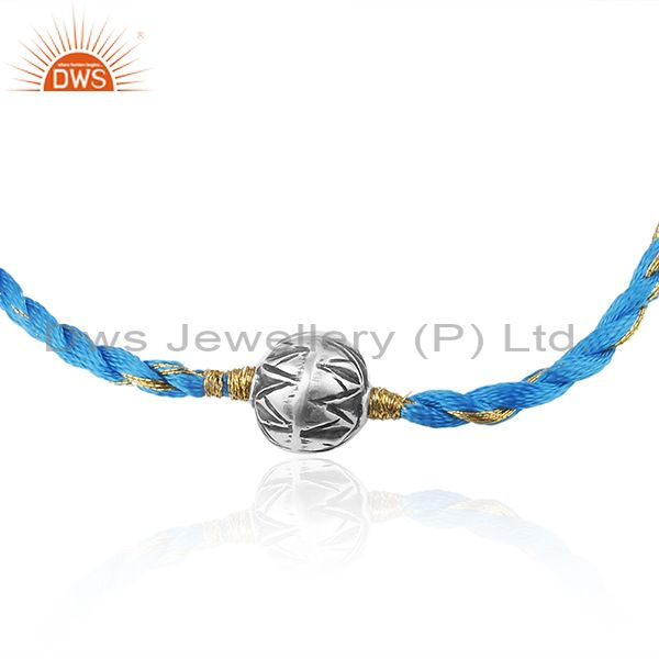 Handmade Blue Macrame Oxidized 925 Sterling Silver Beaded Bracelet