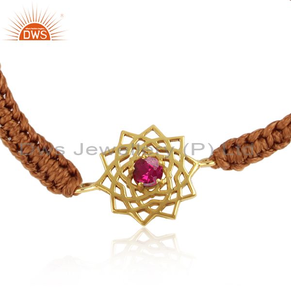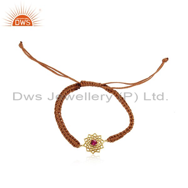 Handmade Energy Chakra Gold On Silver Brown Cord Red Cz Bracelet