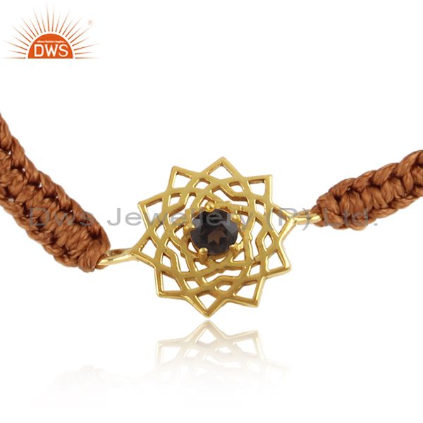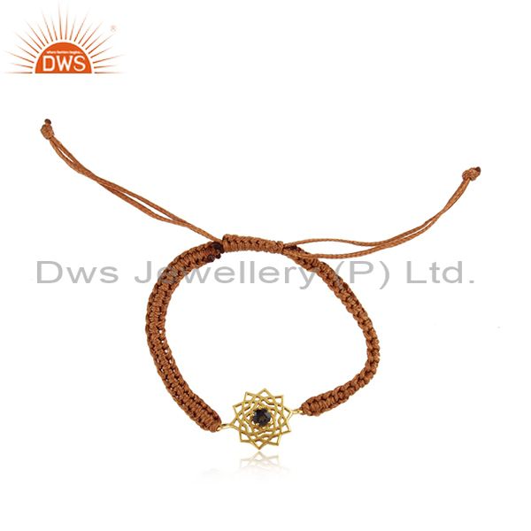 Handmade Energy Chakra Gold On Silver Brown Cord Smoky Cz Bracelet
