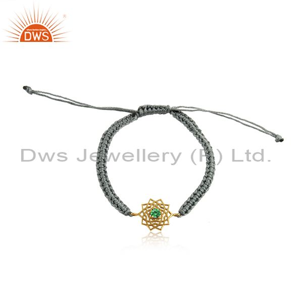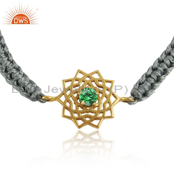 Handmade Energy Chakra Gold On Silver Gray Cord Green Cz Bracelet