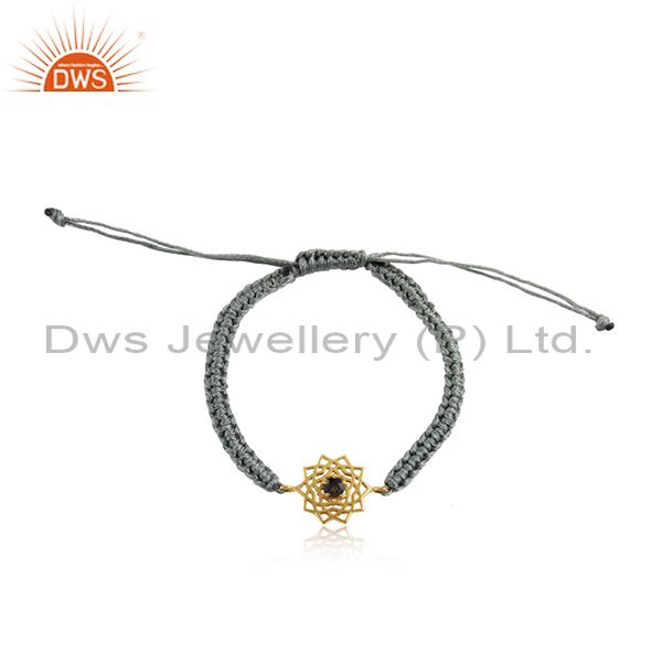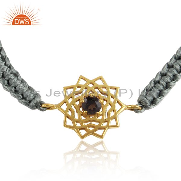 Handmade Energy Chakra Gold On Silver Gray Cord Smoky Cz Bracelet