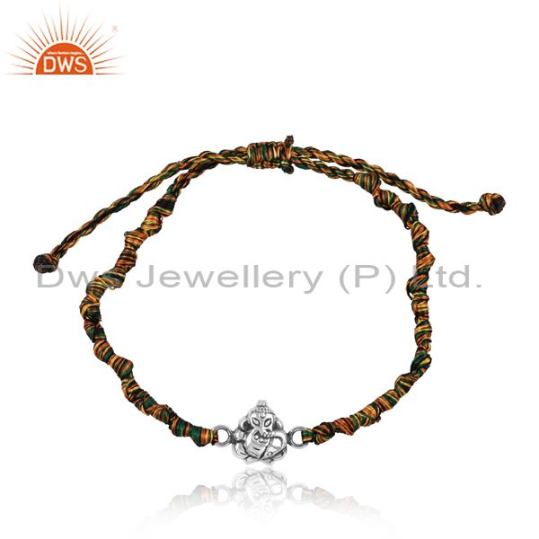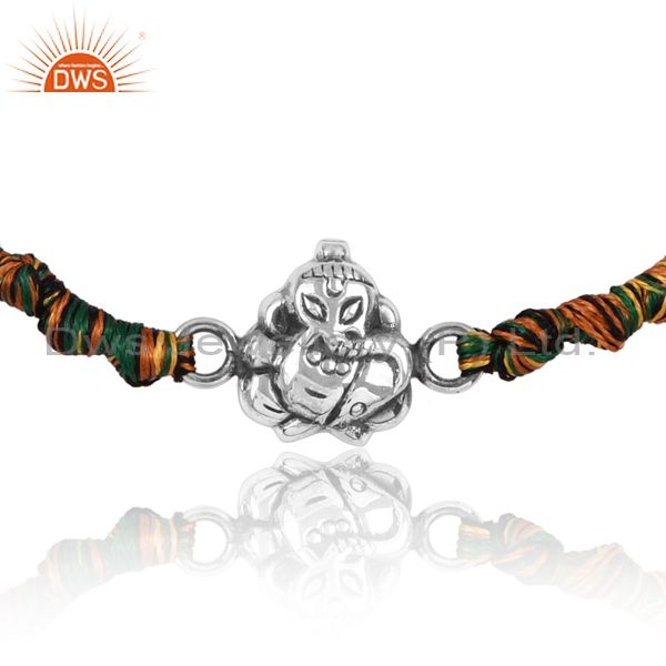 Handmade Oxidized 925 Silver Charm Set Cotton Dori Bracelet