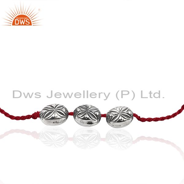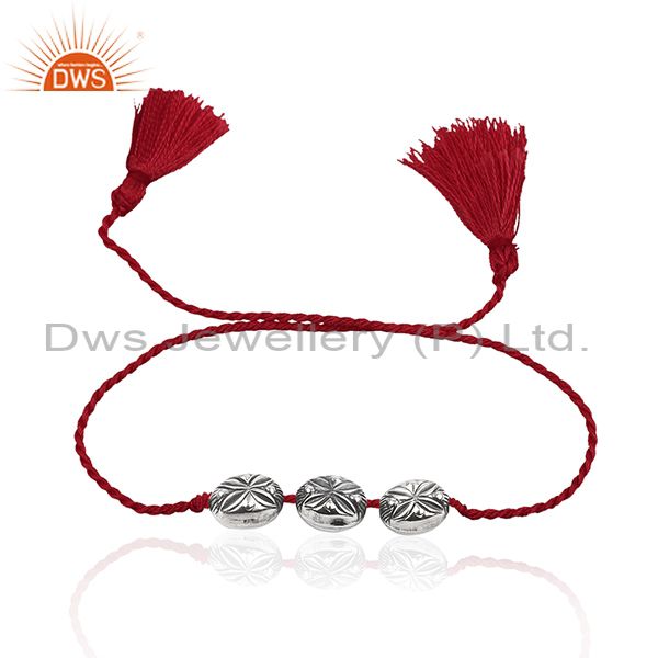 Handmade Red Macrame Designer Oxidized Silver Bead Bracelet Jewelry