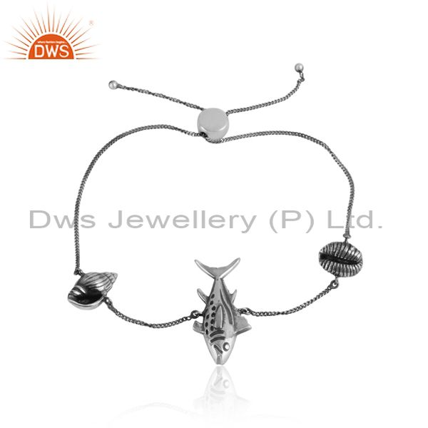 Handmade Sea Charms Oxidized Silver 925 Adjustable Bracelet