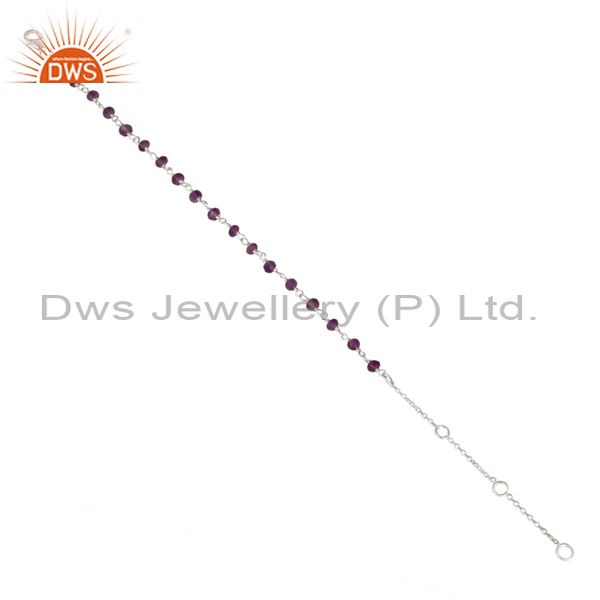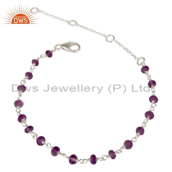 Handmade Solid 925 Sterling Silver Amethyst Beaded Chain Bracelet Jewelry