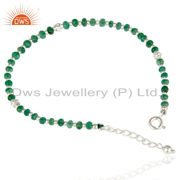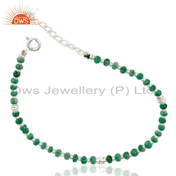 Handmade Solid 925 Sterling Silver Faceted Emerald Beads Chain Bracelet Jewelery