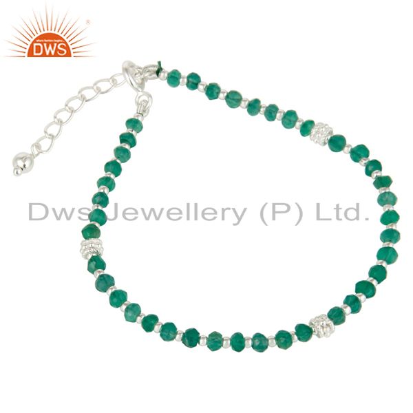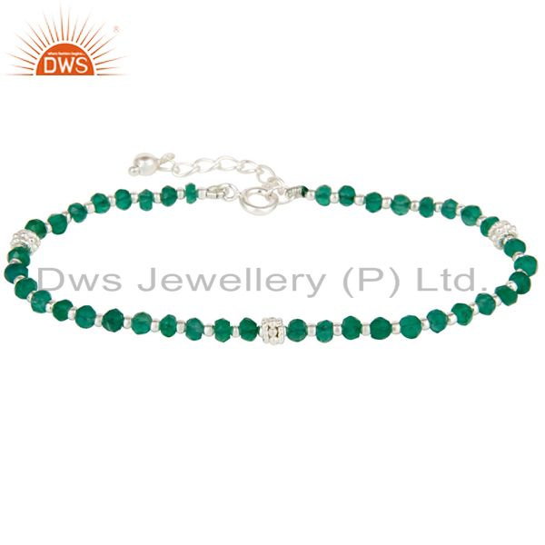 Handmade Solid 925 Sterling Silver Green Onyx Gemstone Beads Chain Bracelet