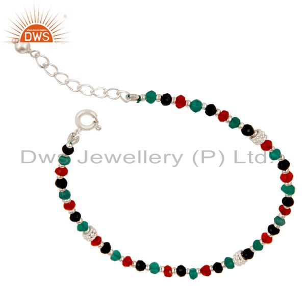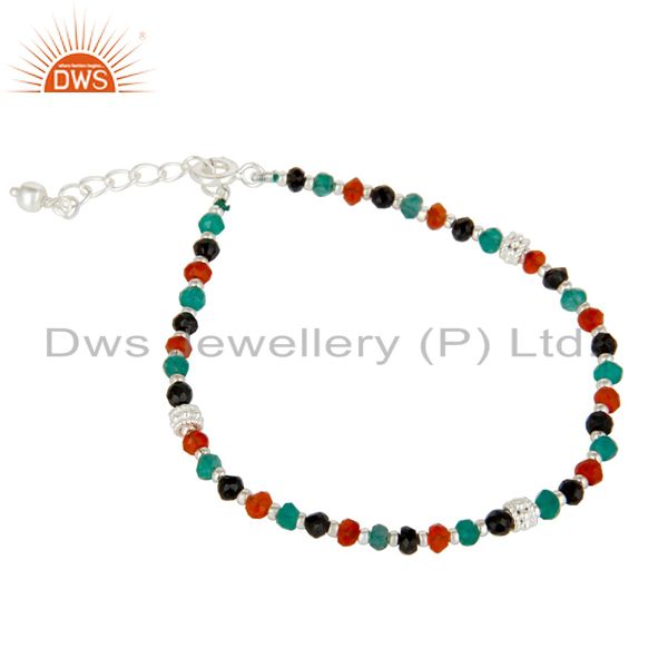 Handmade Solid 925 Sterling Silver Multi Color Onyx Beads Chain Bracelet