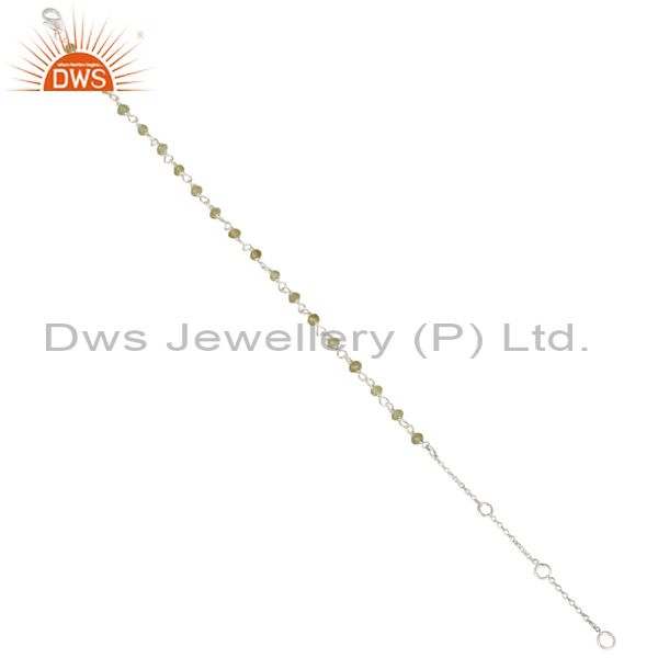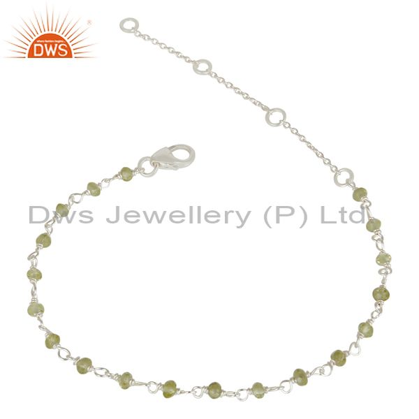 Handmade Solid 925 Sterling Silver Natural Peridot Gemstone Beaded Bracelet