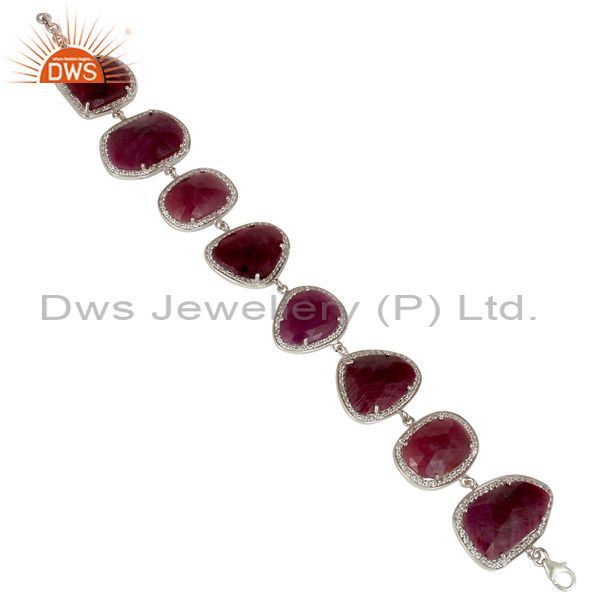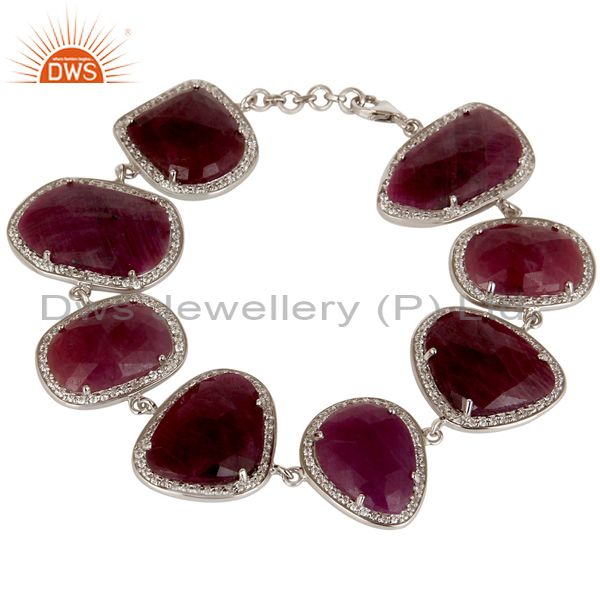 Handmade Solid 925 Sterling Silver Ruby Checkered & White Zirconia Bracelet