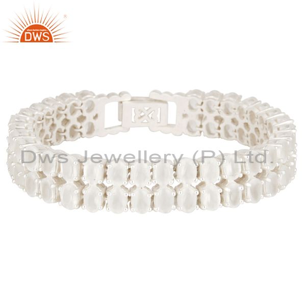 Handmade Solid 925 Sterling Silver White Moonstone Tennis Fashion Bracelet