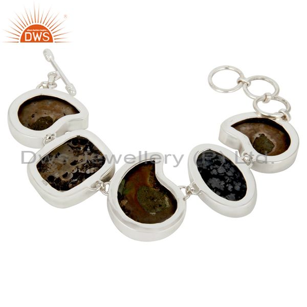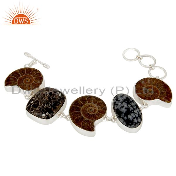 Handmade Solid Sterling Silver Ammonite And Turritella Agate Bezel Set Bracelet